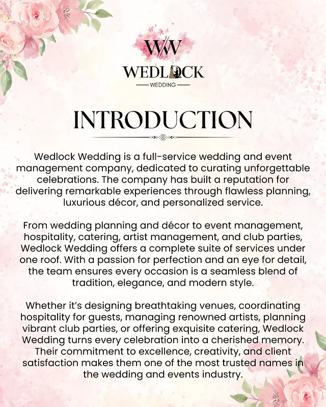 At Wedlock Wedding, every celebration we plan is more than an event—it’s a heartfelt journey with our clients. From the very first meeting to the final goodbye, we handle every detail with care, creativity, and precision.